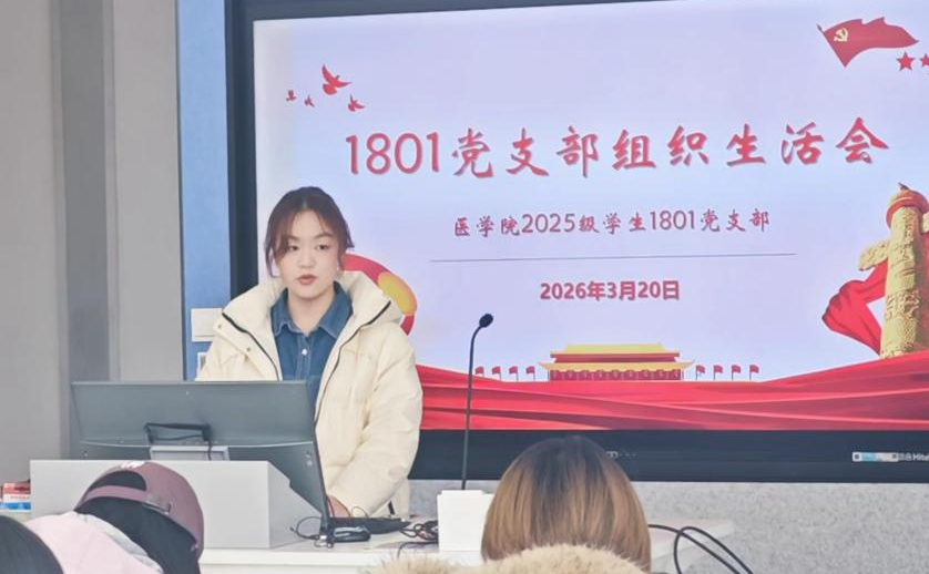 为深入学习贯彻习近平新时代中国特色社会主义思想,全面落实党的二十届四中全会精神,推进作风建设常态化长效化,3月20日,医学院2025级1801党支部在教二楼118教室召开组织生活会,开展民主评议党员和党支部工作考评。医学院党总支组织委员褚晓玲老师列席指导,支部9名党员全员参会,会议由党支部书记李灿主持。